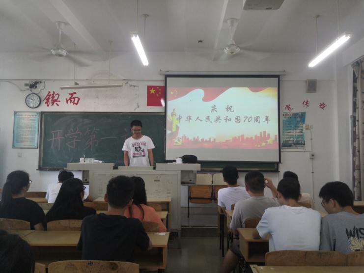 讲座内容分为两个部分,首先班长向全体同学讲解了“中华人民共和国70周年”相关历程,激励同学的爱国主义热忱,弘扬爱国主义精神,培养历史责任感,使命感和高尚的爱国情操及增强老员工责任意识。