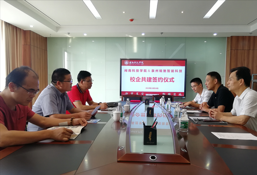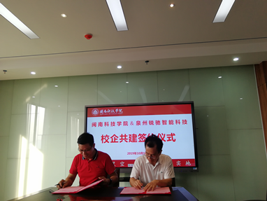 10月10日下午,bevictor韦德官网与泉州锐驰智能科技有限公司在明德楼会议室举行校企共建签约仪式。锐驰集团副总裁吴德福、人力资源行政中心人资经理邹清虎和公司副经理吴勇、教务处副主任刘标、bevictor韦德行政负责人郭震宁、bevictor韦德专任教师刘巧玲等出席仪式。
